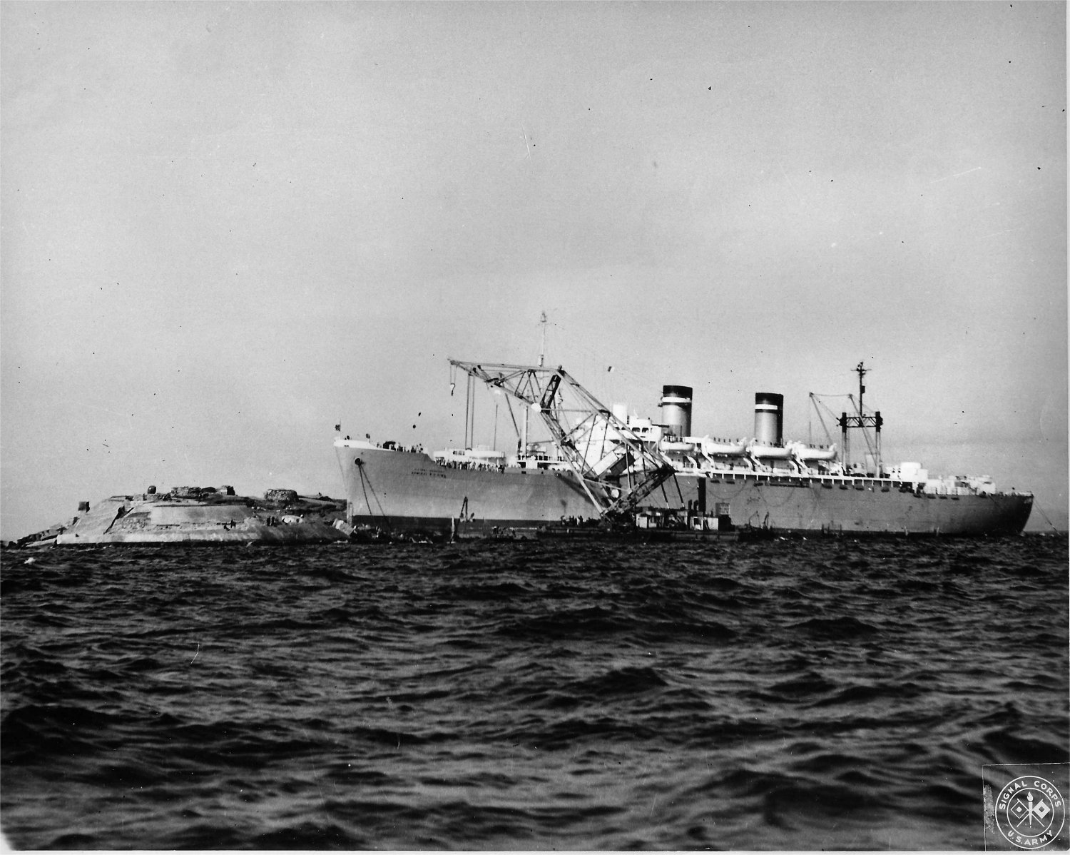 294k | USAT General William O. Darby aground in Yokohama Bay in 1947.