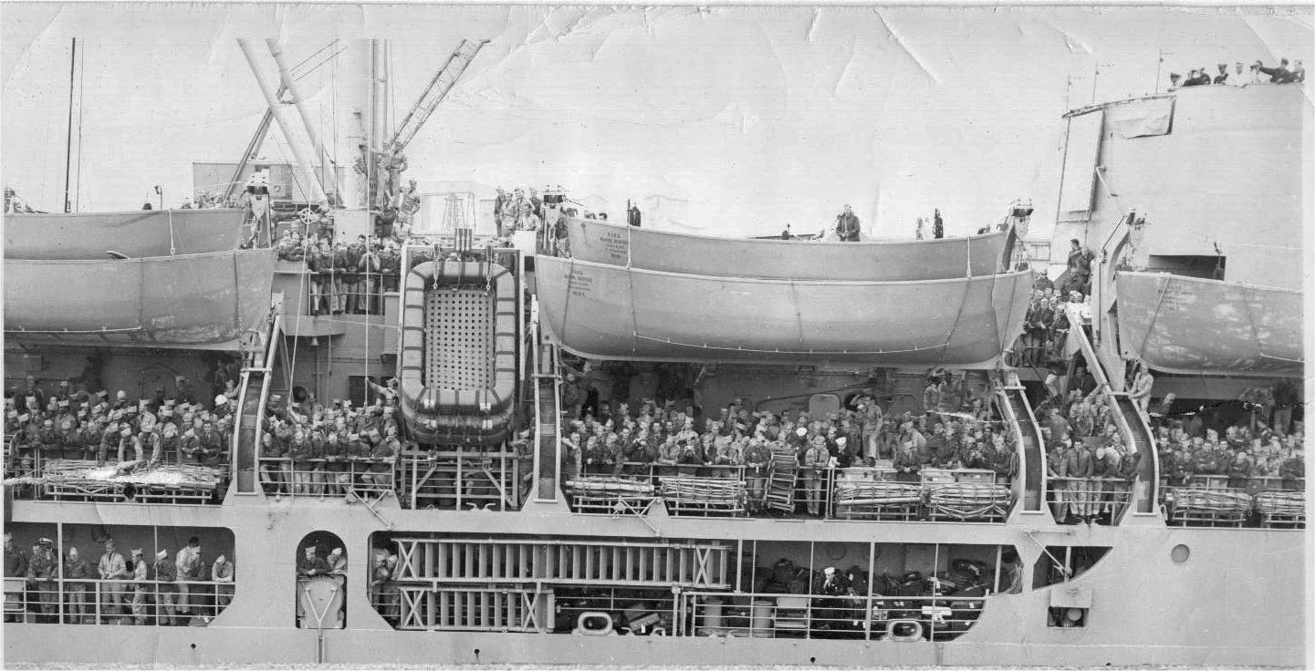 with ASF Troops aboard. Some of the Army units aboard had been assigned to ships radiation and decontamination operations following Operation Cross Roads Atomic Test in 1946. |