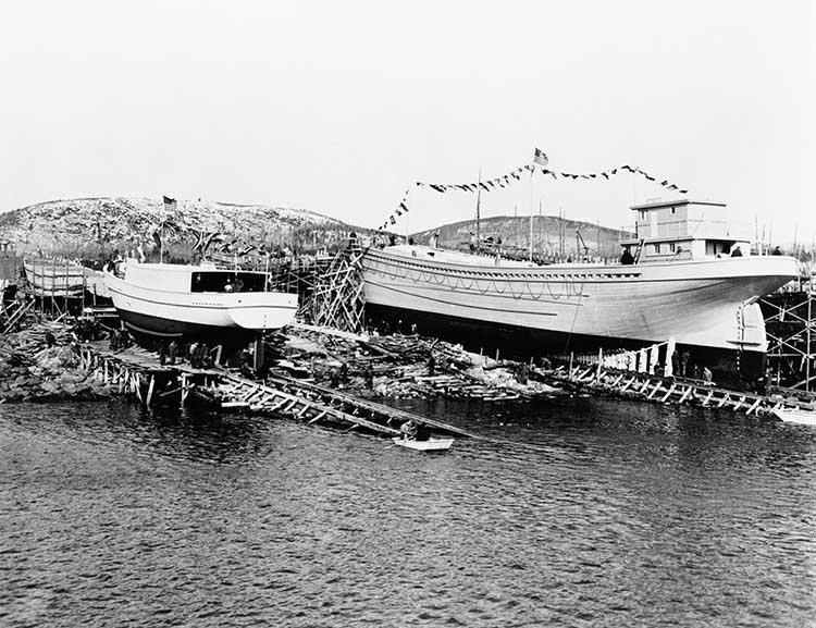 Pine Tree #1 (right) were launched 8 February 1943. Pine Tree #1 would later be acquired by the US Navy and designated