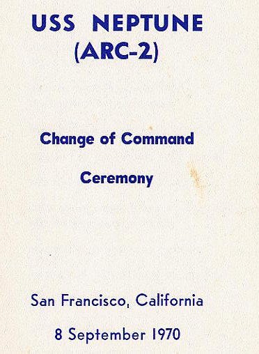 45k | USS Neptune (ARC-2) Change of Command, 8 September 1970 at San Francisco, CA. | Russ Padden, courtesy Don Scott YNCS USN Ret | |