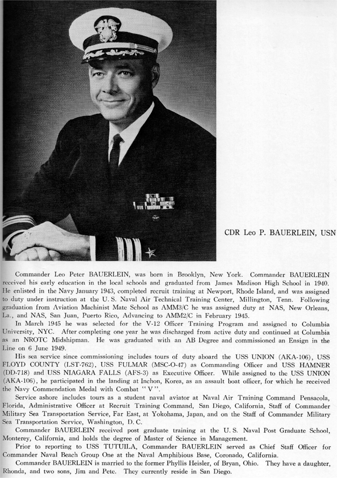 | 19 | CDR. Bauerlein, Leo Peter, USN | 18 November 1968 - 8 November 1969 |