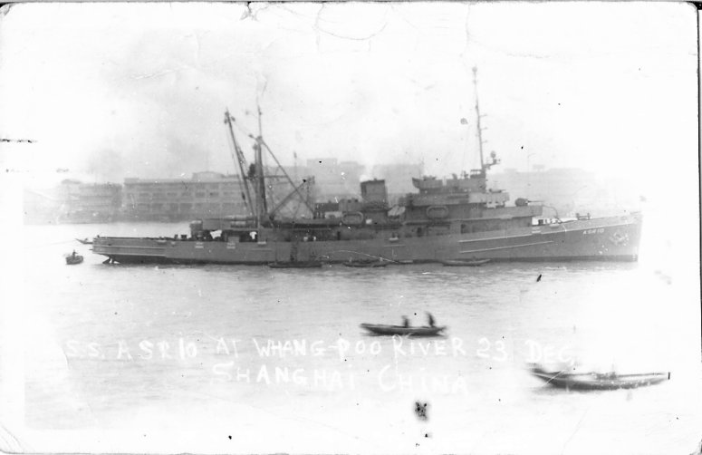 39k | USS Greenlet (ASR-10) moored midstream in the Whangpoo River, Shanghai, China, 23 December 1946. | John Cronk for his father John H. Cronk USS Greenlet | |