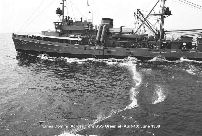 114k | Lines come across as USS Greenlet (ASR-10) prepares for a a high-line transfer, June 1968 | Richard Miller BMCS USNR Ret. | |