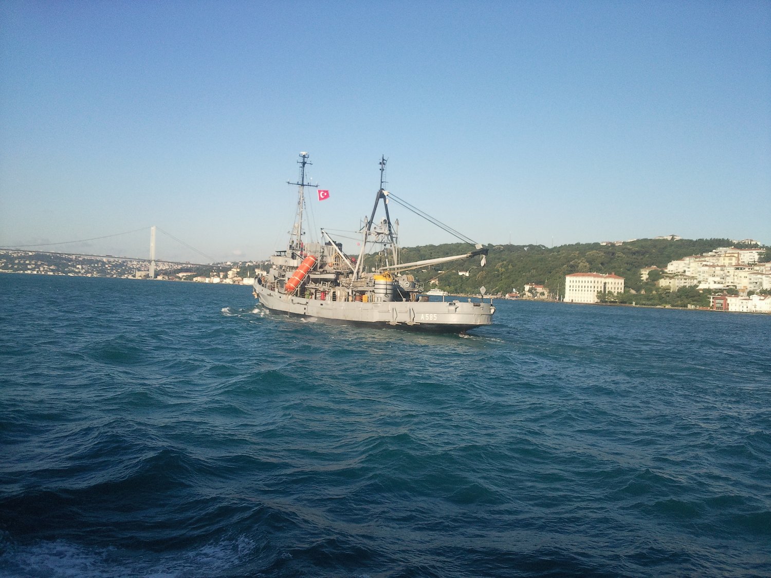 333k | TCG Akin (A-585) under way in the Bosphorus, 21 June 2012 Photo by Kuara (real name unknown) from the steamboat Üsküdar-Besiktas. |