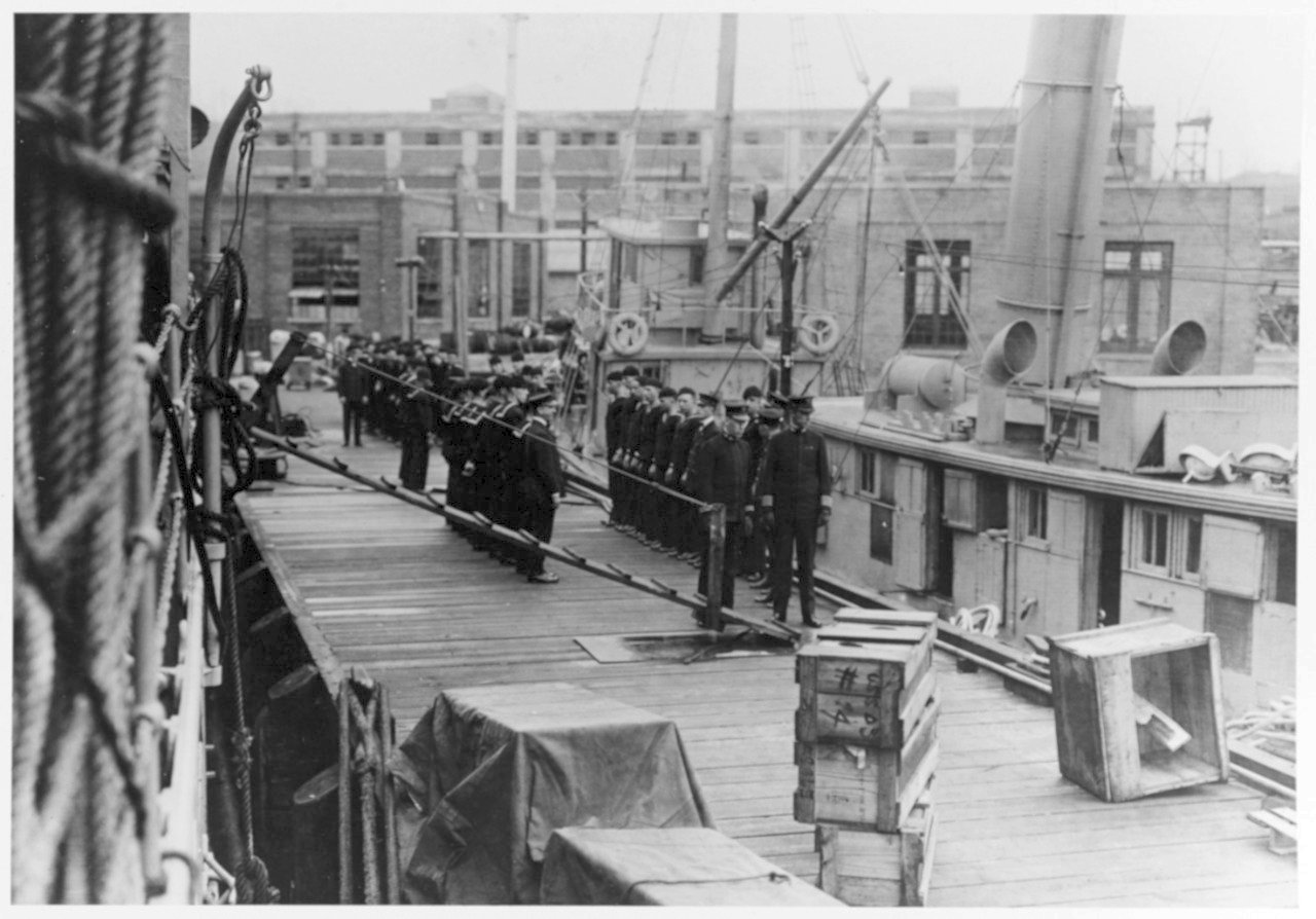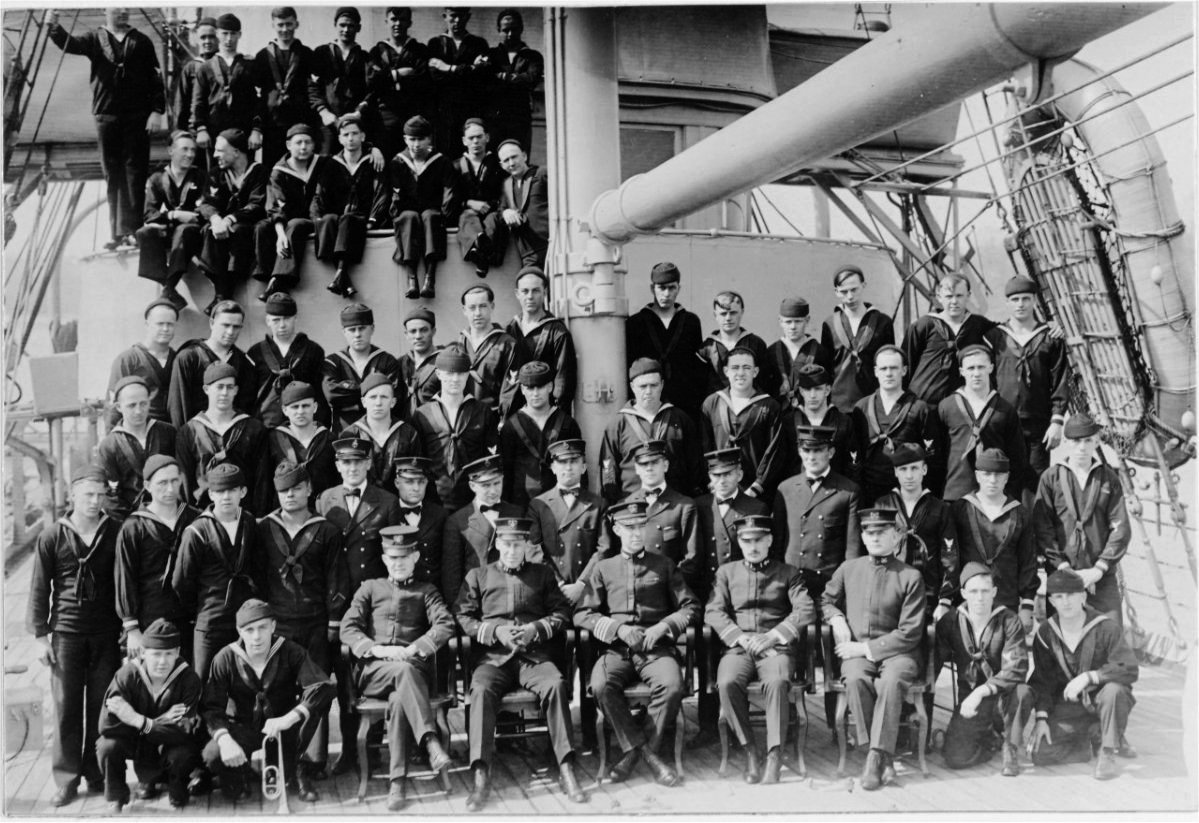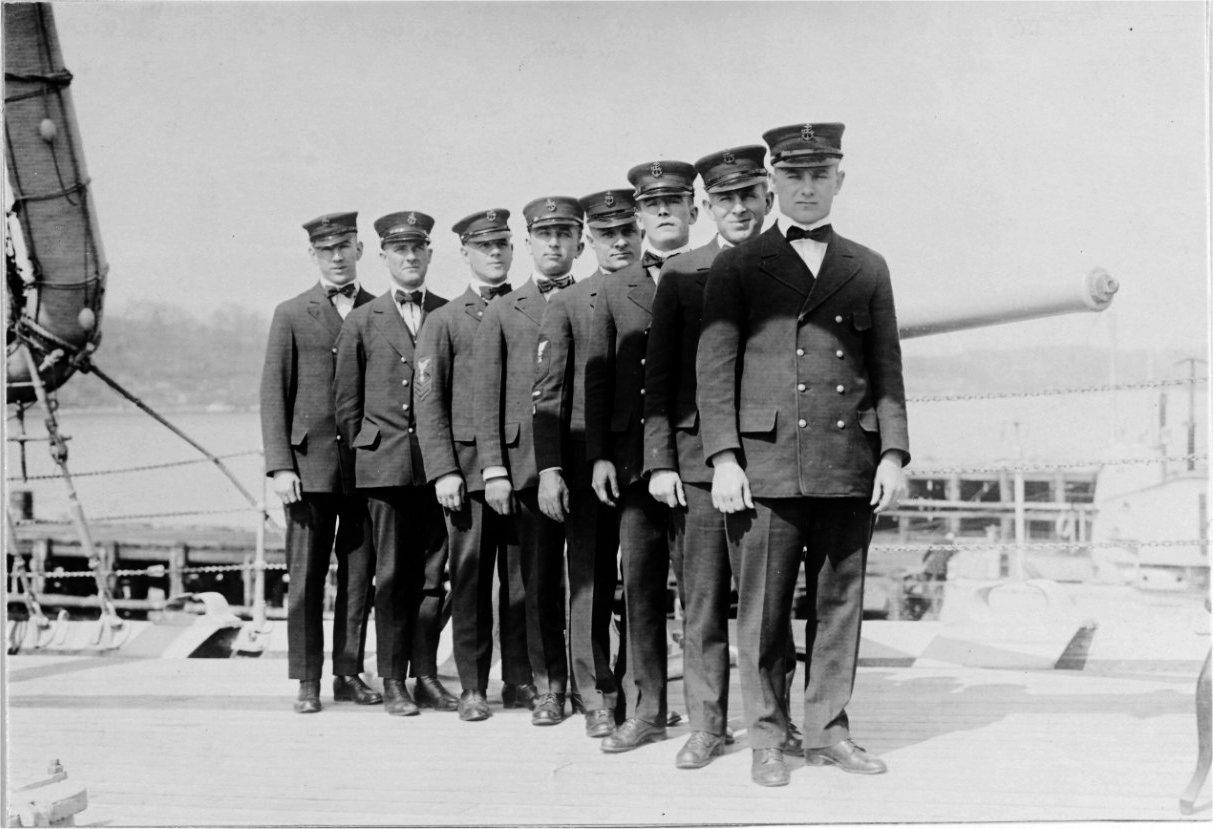 Base New London, Connecticut, after completing inspection of ship and crew, 1919.