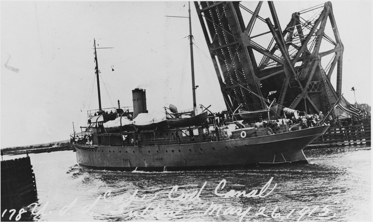 168k | USS Fulton (Submarine Tender #1) in the Cape Cod canal, 26 May 1915.