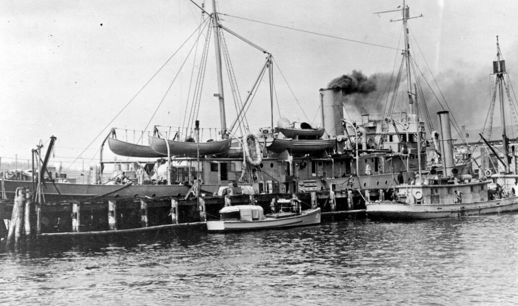 128k | USS Fulton (AS-1) moored pierside at Naval Station Coco Solo, Canal Zone, in April 1924.