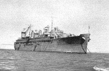 53k | USS Fulton (AS 11) at anchor, date and location unknown. US Navy photo from "All Hands" magazine September 1946 |