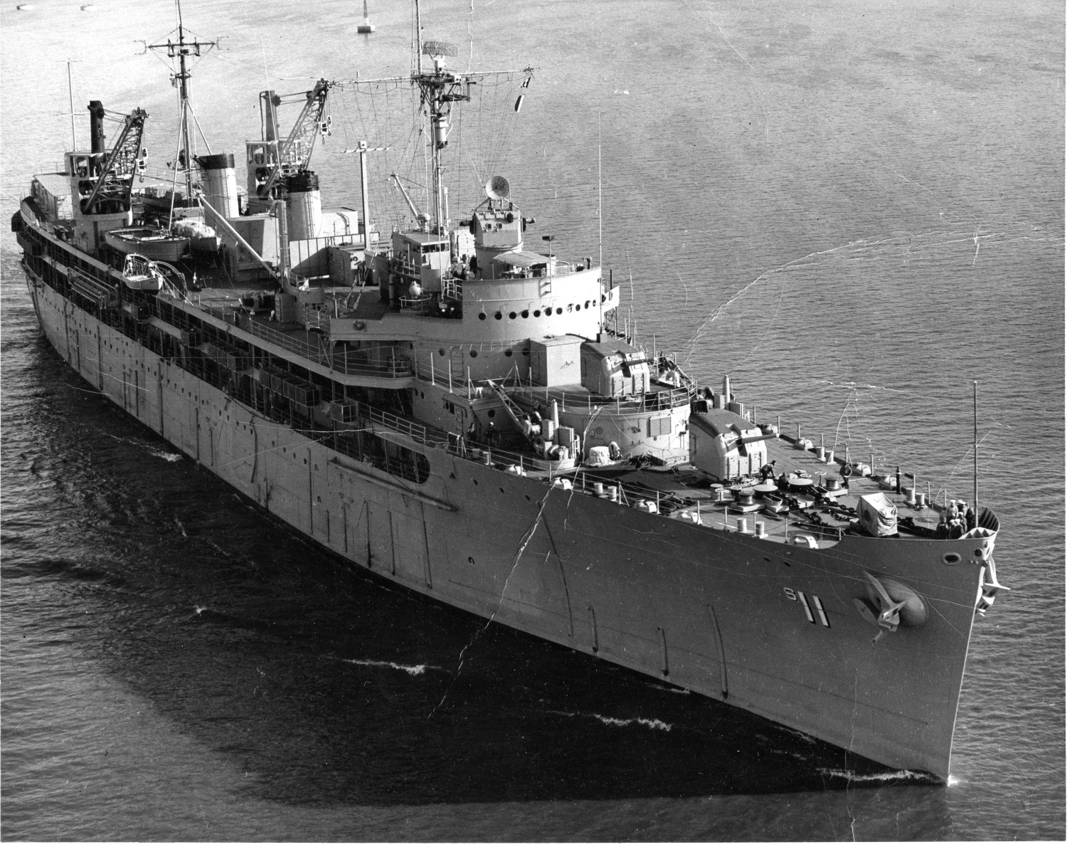 50k | USS Fulton (AS 11) at anchor in 1959. US Navy photo from "All Hands" magazine September 1959 |