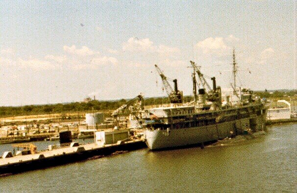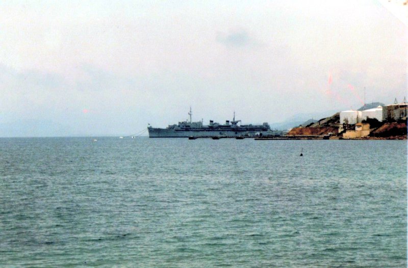 79k | USS Orion (AS-18) in her moorings at La Maddalena, Sardinia, Italy in August 1987. Photo by Wendell McLaughlin PN1 (SS), USN Ret. |