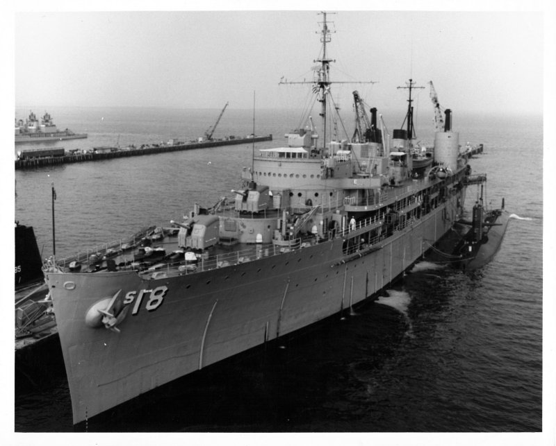 61k | USS Orion (AS-18) tending submarines, Naval Station Charleston, S.C., date unknown. | ||