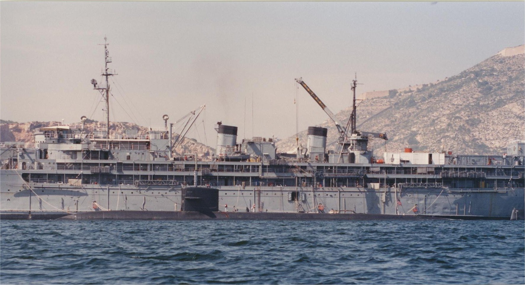 292k | USS Orion (AS-18) and USS Key West (SSN-722), off Cartagena, Spain, 26 May 1990. | Manuel García García | |