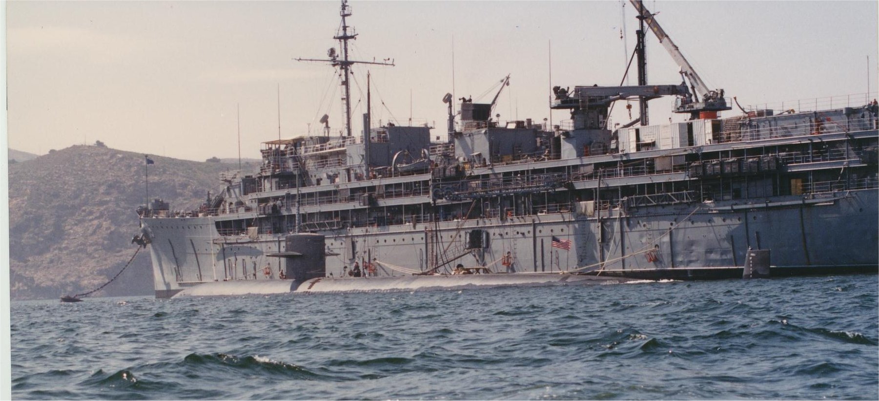 125k | USS Orion (AS-18) tending a submarine while forward deployed at La Maddalena, Sardinia, Italy, circa 1983. | Wendell McLaughlin | |