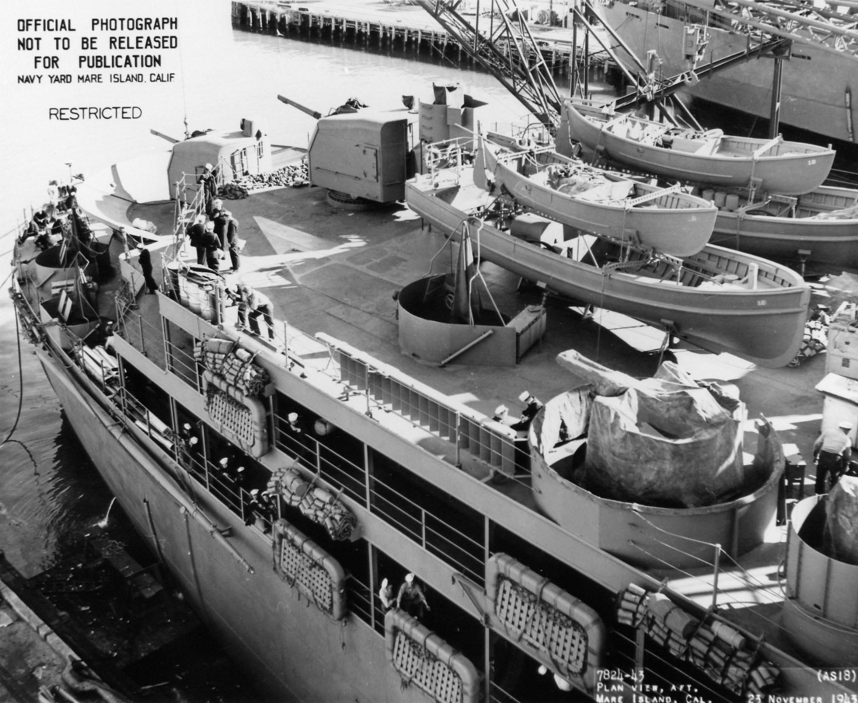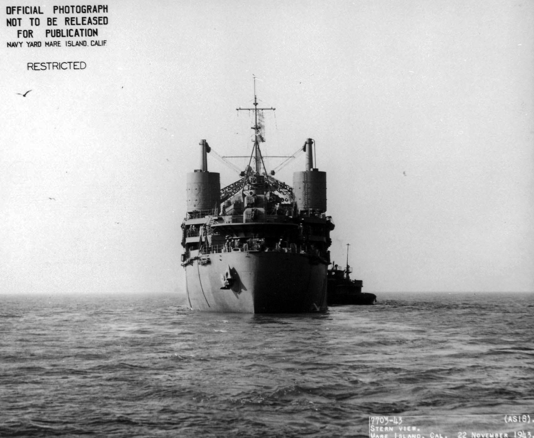 167k | USS Orion (AS-18) at Mare Island 22 and 23 November 1943 at the end of her post commissioning overhaul.