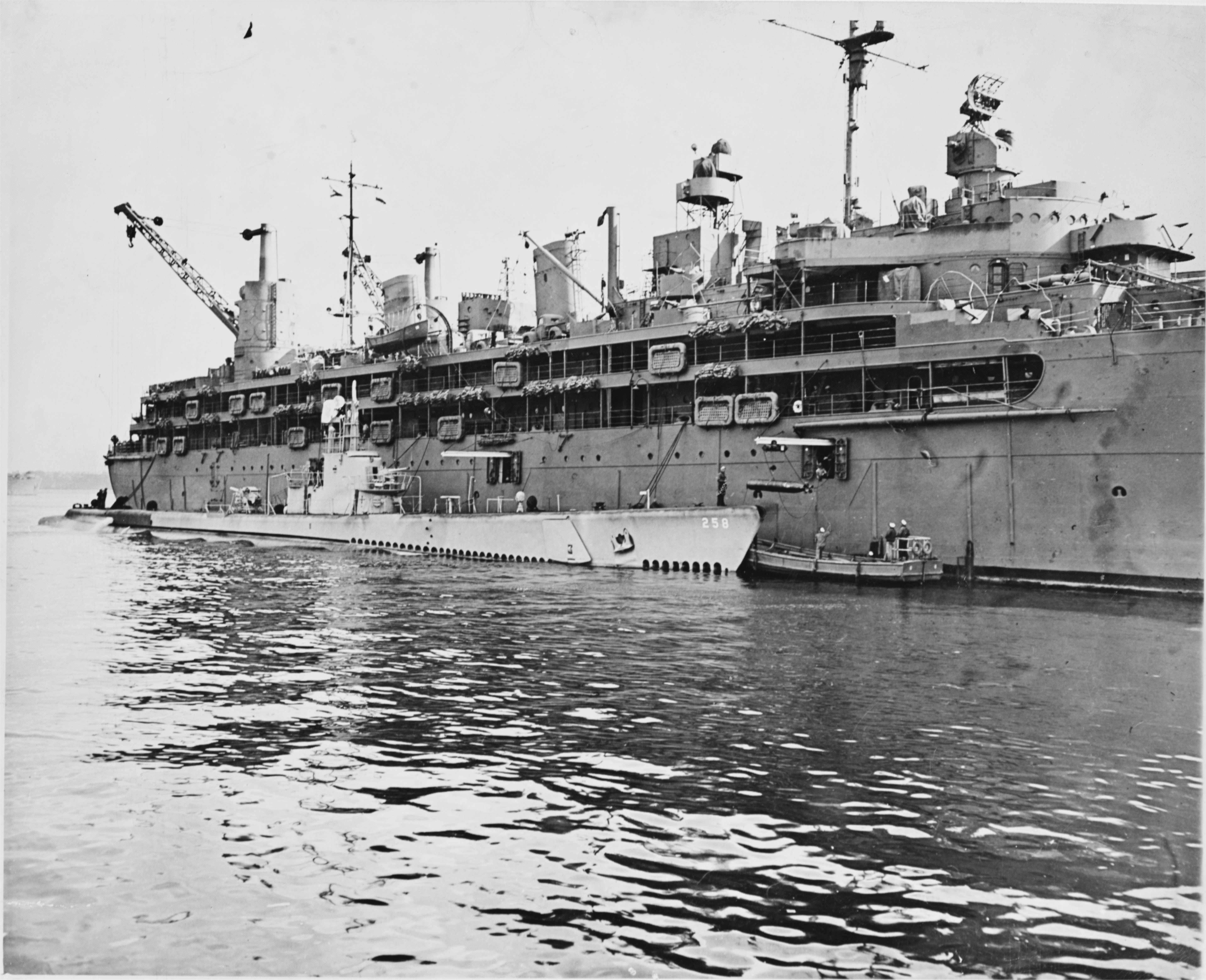 USS Piper (SS-409) alongside.