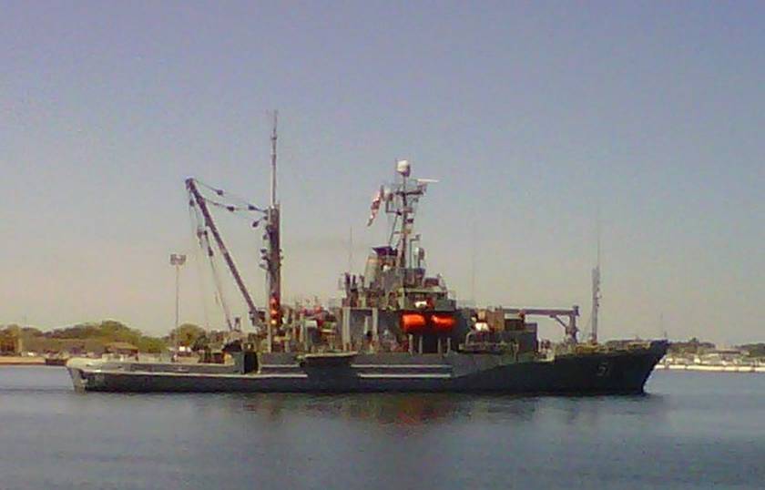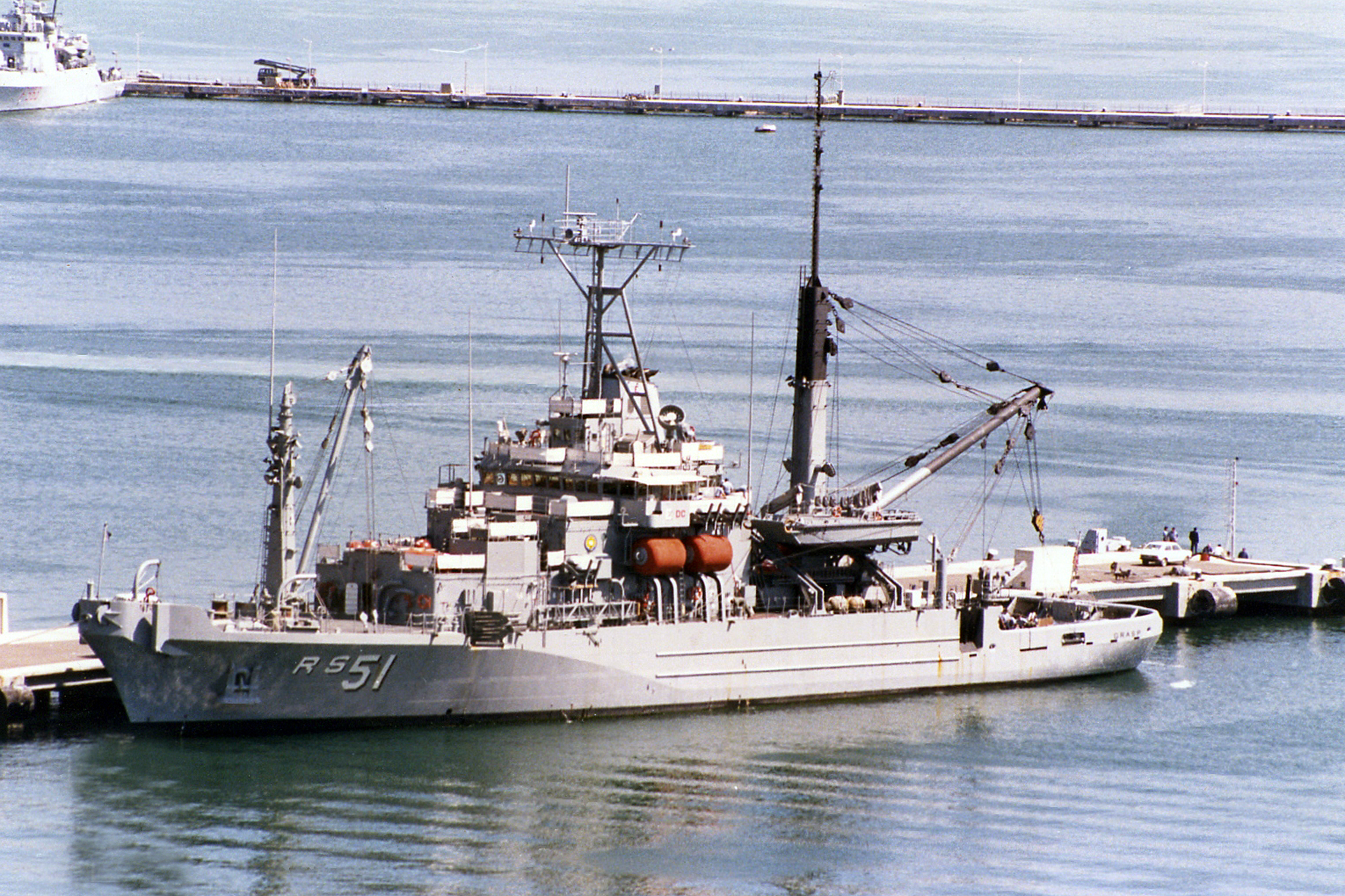 70k | USS Grasp (ARS-51) moored pierside at Barcelona, Spain, 1 January 1992 | Photo by Ignacio Lopez ex member Armada Espanola |