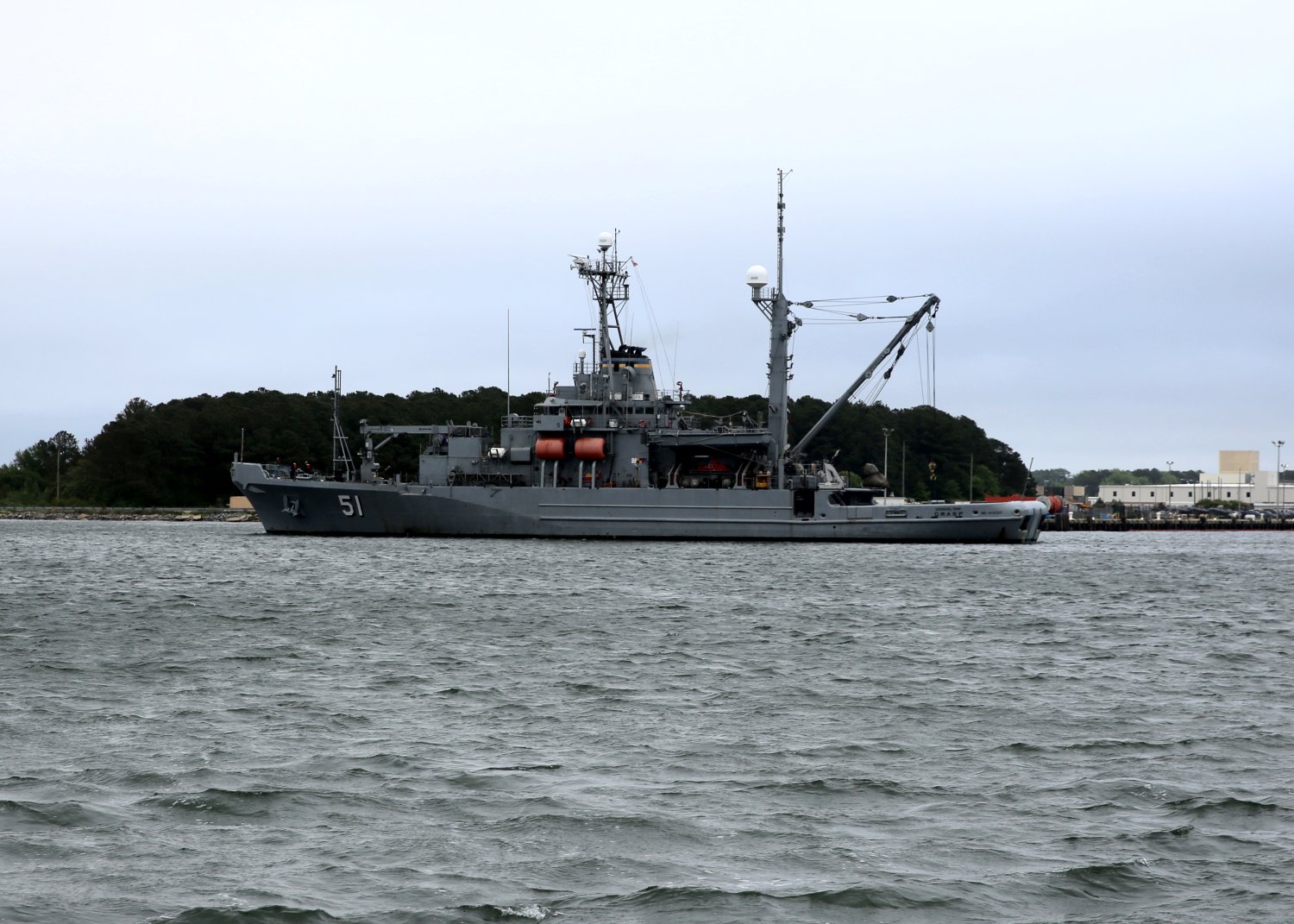263k | USNS Grasp (T-ARS-51) out bound to sea from Joint Expeditionary Base Little Creek-Fort Story.