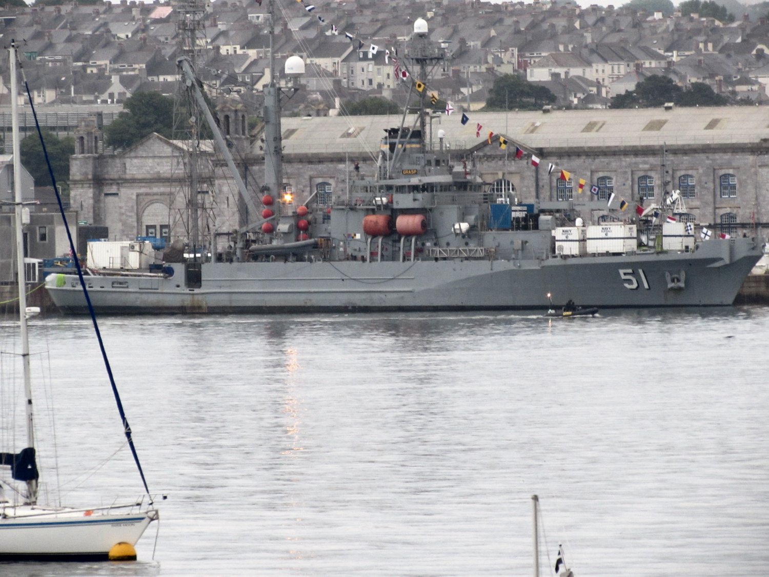 300k | USNS Grasp (T-ARS-51) moored pierside at the Navy Dock Yard, Plymouth, UK, 10 June 2016. Grasp is dressed in flags for the Queen Elizabeth's Birthday. | Photo by Michael Butterfield | |