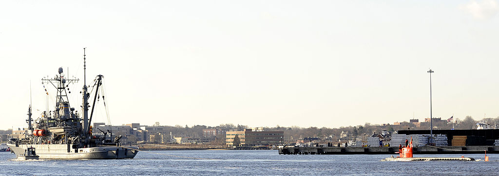 NR-1 along the Thames River past New London for the final time, 2 December 2008.