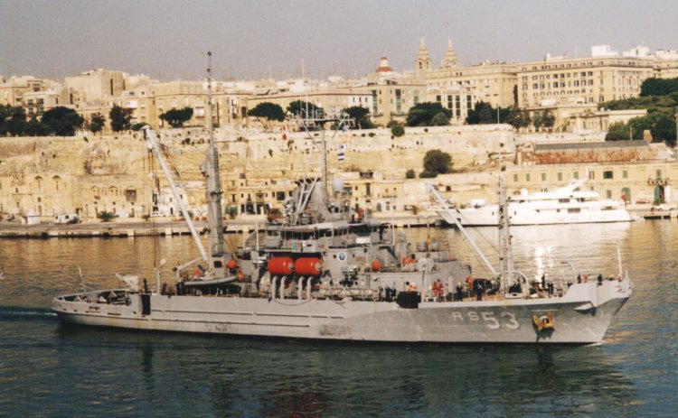 85k | USS Grapple (ARS-53) departing Valletta Port, Malta, 24 August 2001. | Photo by Anthony Vella of Senglea, Malta | |