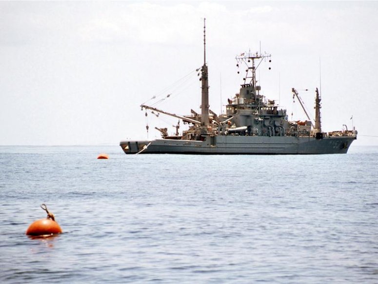 67k | USS Grapple (ARS-53) is in a four point moor above the historical wreck of the Civil War ironclad ex-