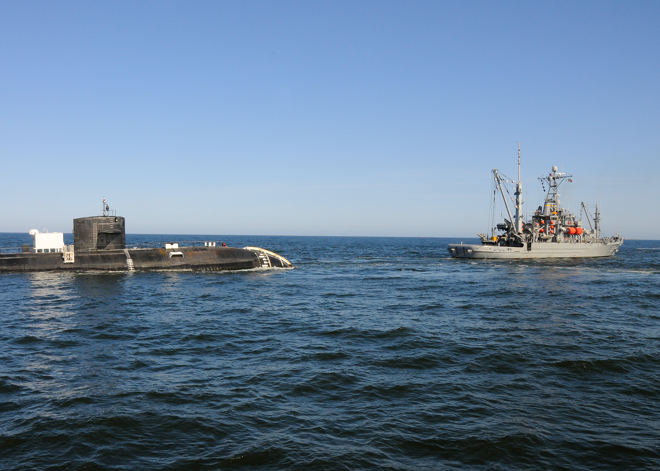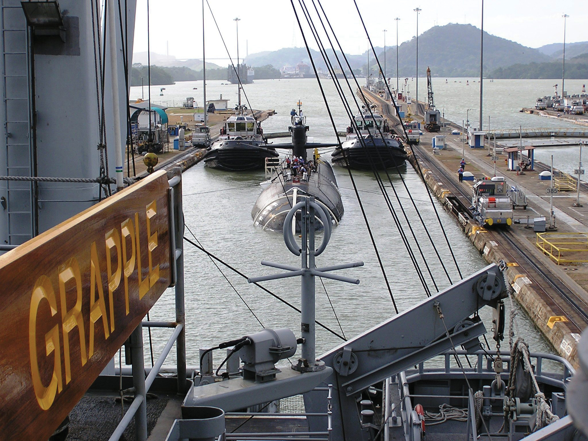 880k | USNS Grapple (T-ARS-53) escorting the decommissioned nuclear-powered attack submarine ex-USS Hyman G. Rickover (SSN-709) through the Panama Canal in April 2008 after towing the submarine 3,600 miles from Kittery, ME. Photo courtesy of USNS Grapple. | Robert Hurst | |