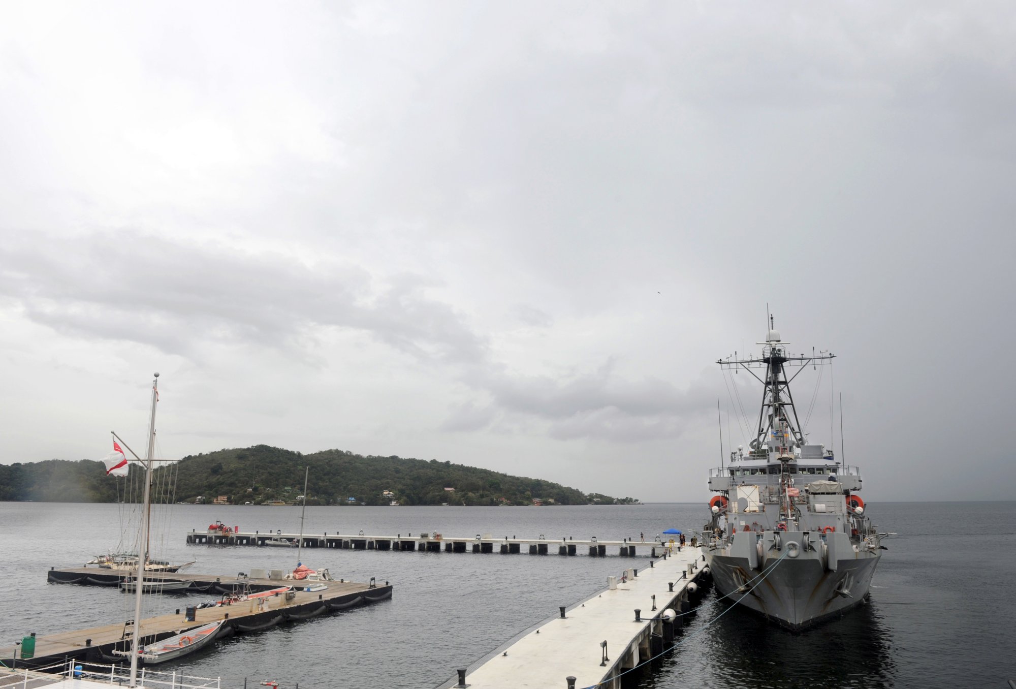 247k | USNS Grapple (T-ARS-53) moored pierside at Chaguaramas Coast Guard Base in Trinidad and Tobago. Grapple along with Mobile Diving and Salvage Unit (MDSU-2), Company 2-1, is participating in Navy Dive Southern Partnership Station 2012, a multinational partnership engagement designed to increase interoperability and partner nation capacity through diving operations. US Navy photo # 120320-N-BJ279-029 CHAGUARAMAS COAST GUARD BASE, Trinidad and Tobago (March 20, 2012) by MC2 Kathleen A. Gorby |