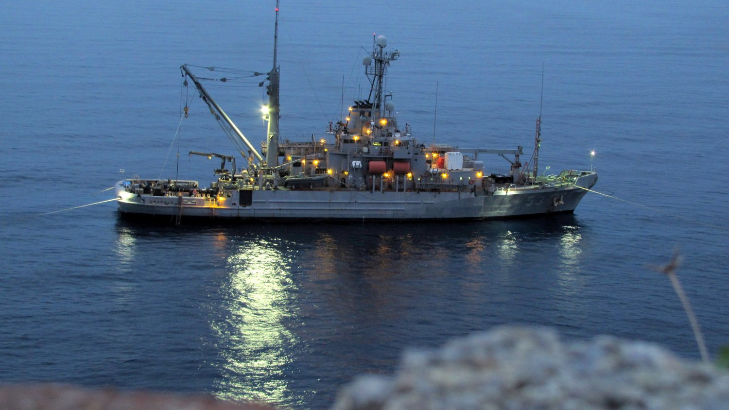 201k | USNS Grapple (T-ARS-53) at anchor off Calvi, Corsica, 21 October 2012, during a research diving operation to find a ditched World War 11 B-17 Flying Fortress. Photos B.Guidi |