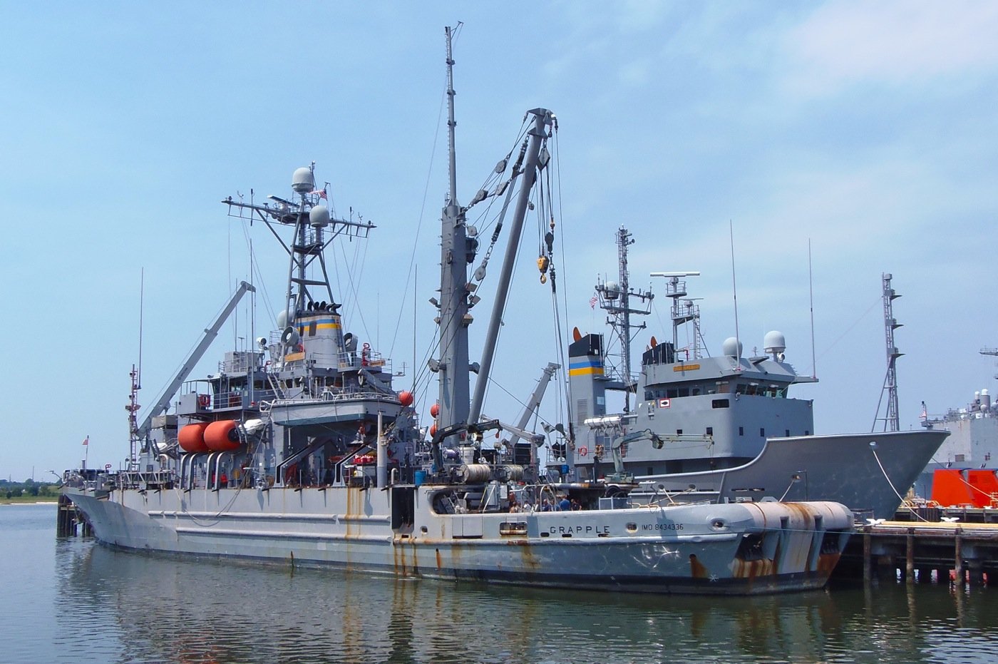 80k | USS Grapple (ARS-53) moored pierside at NAB Little Creek, 8 September 2005. US Navy photo # 050908-N-0535P-001. |