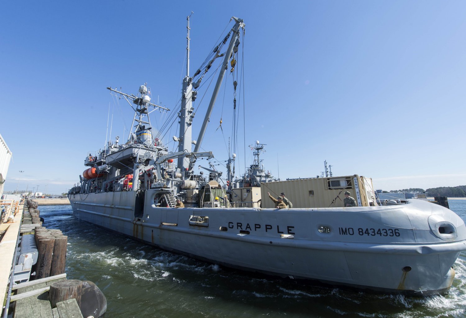 U.S. 6th Fleet area of operations. Aboard Grapple is a detachment from