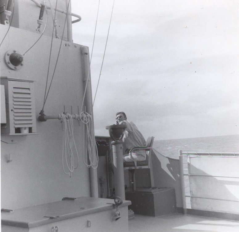 65k | USS Sunnadin (ATA-197)'s starboard bridge wing, CWO4 Wylie on watch, date unknown | Photo by Charles Tremblay EN2 USN USS Sunnadin | |