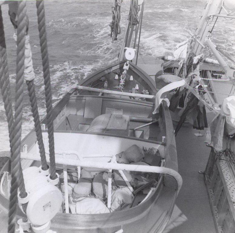 111k | USS Sunnadin (ATA-197) underway, view of the ship's 26' Motor Whaleboat, date unknown | Photo by Charles Tremblay EN2 USN USS Sunnadin | |