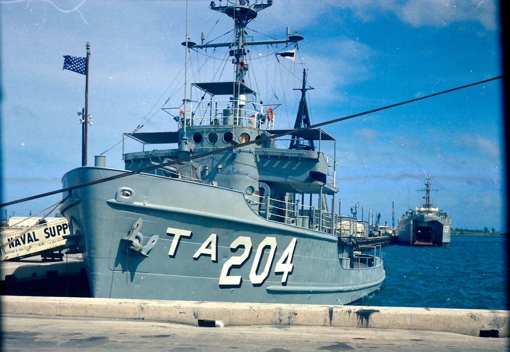 450k | USS Wandank (ATA-204) moored pierside forward of USS San Joaquin County (LST-1122) at Naval Supply Depot Guam, circa 1967-68. | Photo by Eli Blanco RM3, USS Wandank 1967-1968 | |