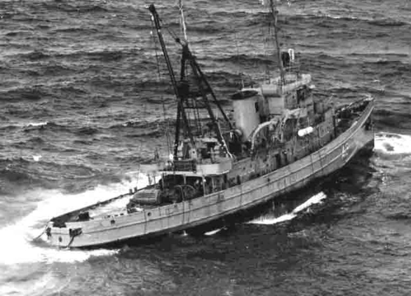 43k | ARA Comandante General Zapiola (A-2) at sea, circa early 1970s | Submitted by Ignacio Amendolara to National Association of Fleet Tug Sailors | |