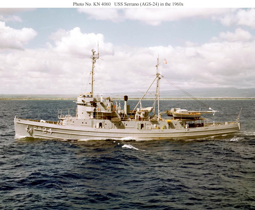119k | USS Serrano (AGS-24) under way off Oahu, HI., date unknown. US Navy photo # KN 4060. courtesy Shipscribe.com |