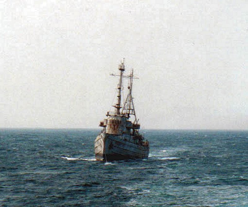84k | Ex-USNS Atakapa (T-ATF-149) under tow by USNS Apache (T ATF 172) for use in a SINKEX, 25 Aug 2000. | Alan Owens | |