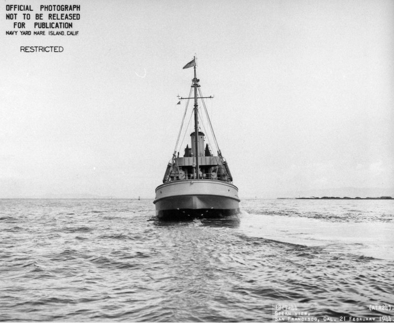Bow view of USS ATR-24 off San Francisco shortly after commissioning. 21 February 1944 Navy Yard Mare Island photo # 1220-44. |