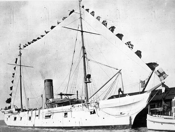 248k | Essex photographed during the Perry Centennial Naval Parade, 1913, Possibly at Erie, PA. She was Ohio Naval Militia training ship at that time. Photo from Washington Naval Yard Library photo archives. |