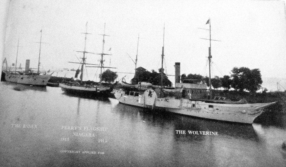 136k | From left to right; celebrating the 100th year anniversary of Commander Perry's victory on Lake Erie. Essex (IX-10), US Brig Niagara and Wolverine (IX-31) moored pierside 1913. | Tommy Trampp | |