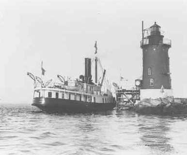 15k | USLHST Iris moored to the pier while serving the lighthouse at the Delaware Breakwater in 1899. Photo from U.S.LIGHTHOUSE SERVICE TENDERS, Eastwind Publishing. | With permission from Eastwind Publishing | |