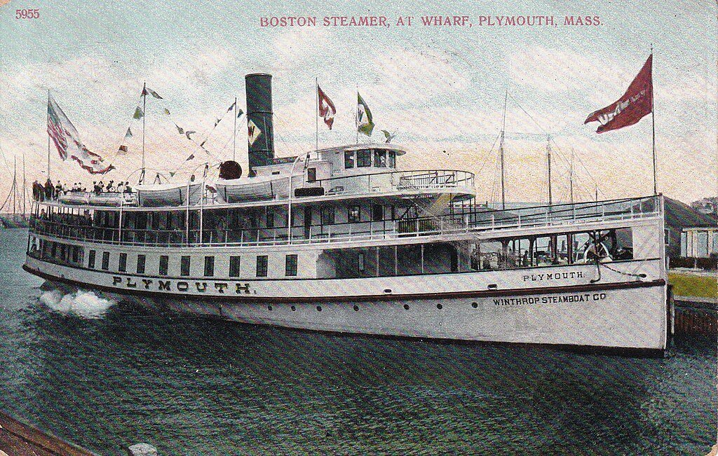 325k | Post card image of passenger steamer SS Plymouth (later USLHT Iris, and USS Big Chief (IX-101).