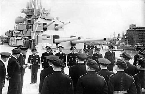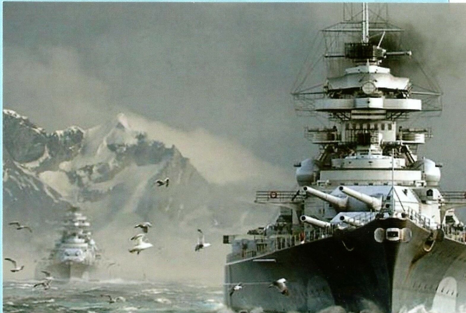 251k | KMS Bismarck followed by KMS Prinz Eugen steam out of Lofjord Norway, May 1942. | Tommy Trampp | |