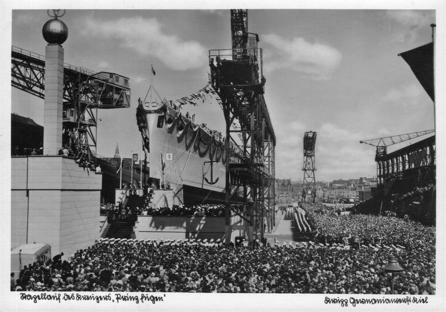 328k | Post card image of the launching of KMS Prinz Eugen 20 August 1938, at Krupp's Germania Werft Yard, Kiel, Germany | Tommy Trampp | |