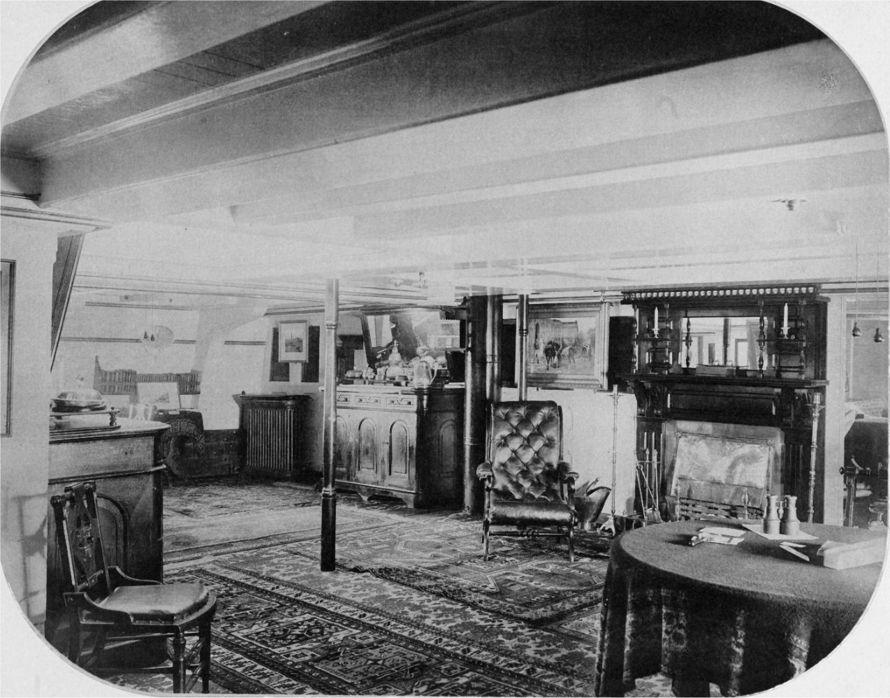 USS Pensacola at anchor of Mare Island Navy Yard, May 1869. Notice the lack of galleries. The quarter galleries which appear in 1861 photos