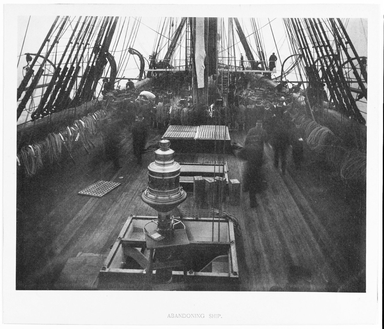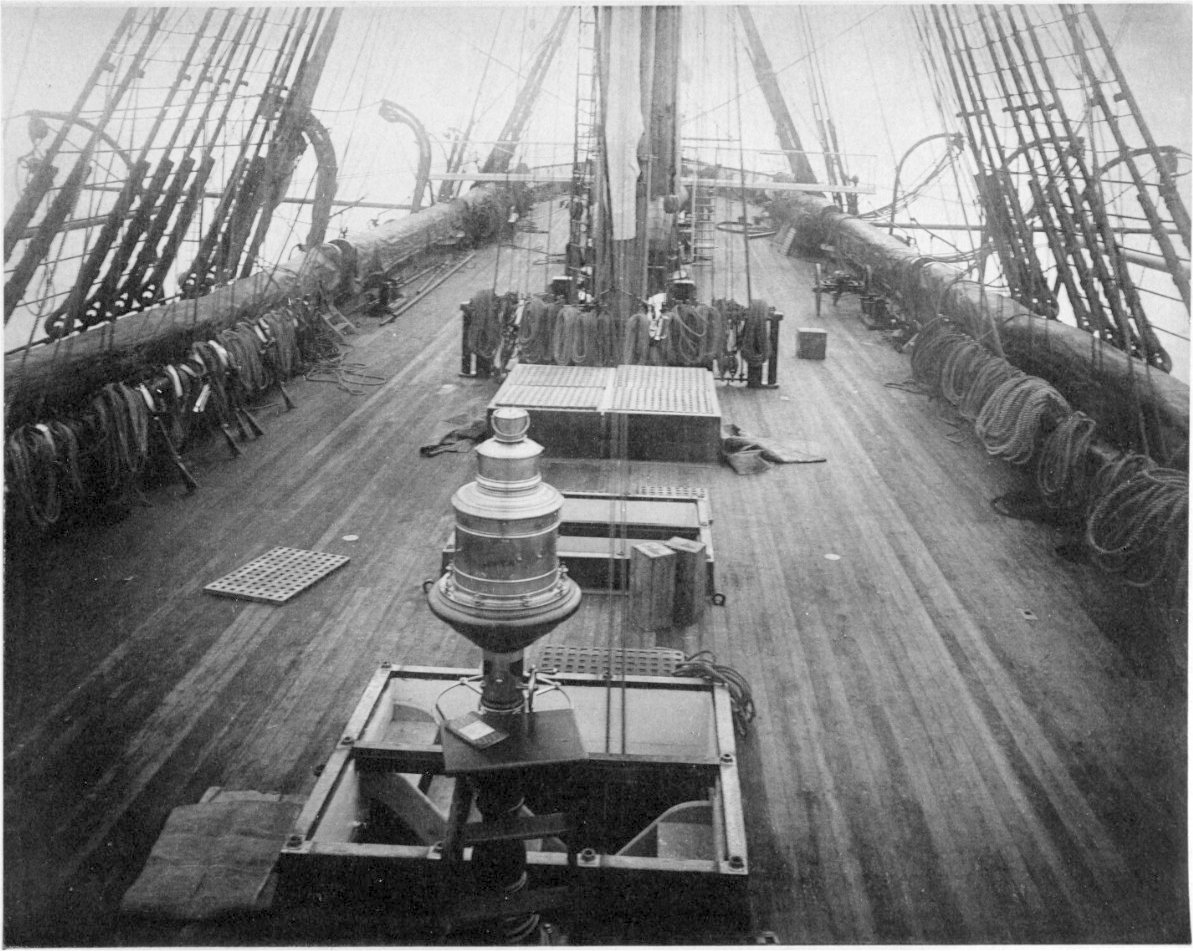 USS Pensacola Spar Deck, after an abandon ship drill, during the 1880s.