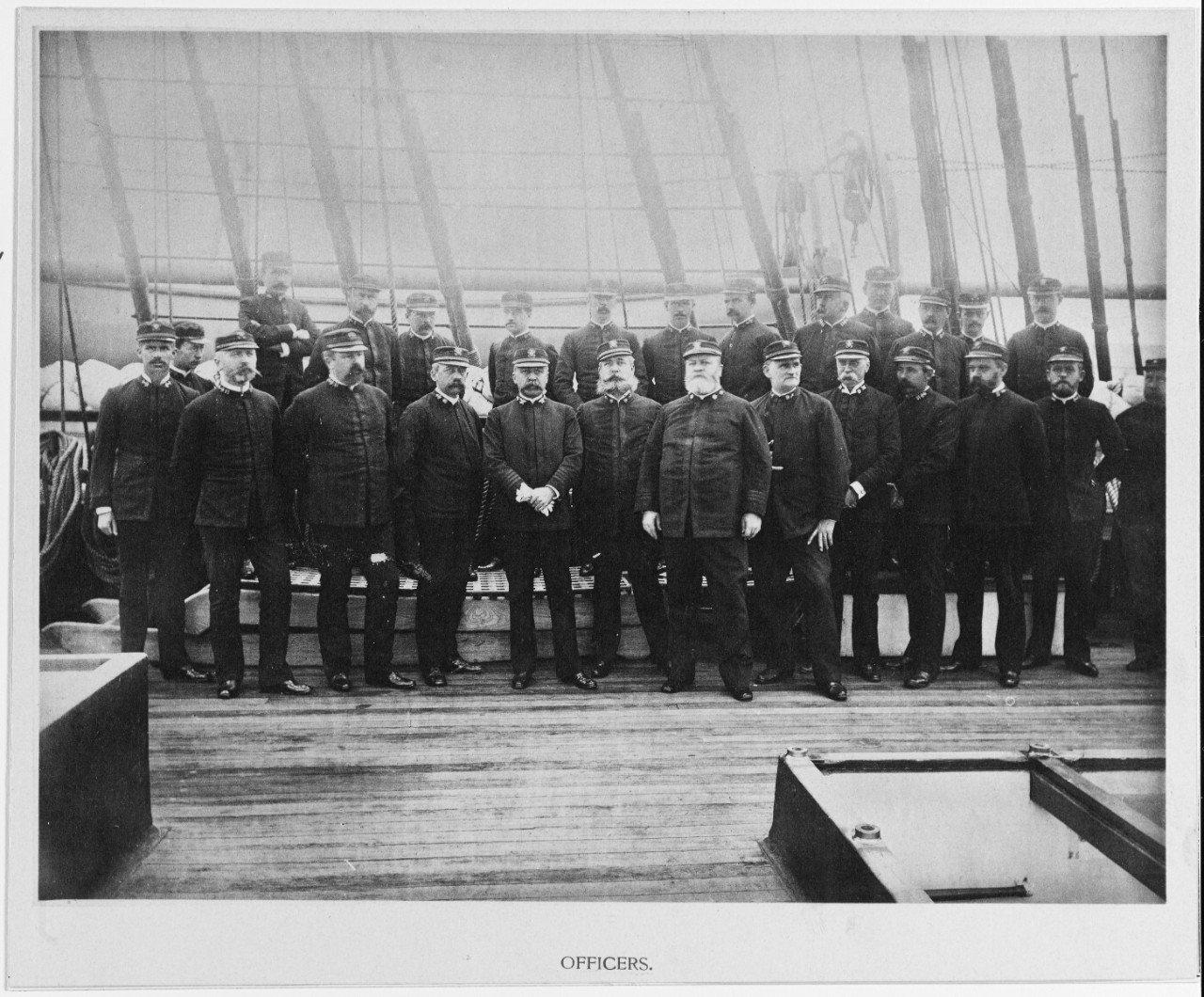 USS Pensacola ship's officers, probably upon her return to the U.S. in February 1888. In front row are (left-right, starting
