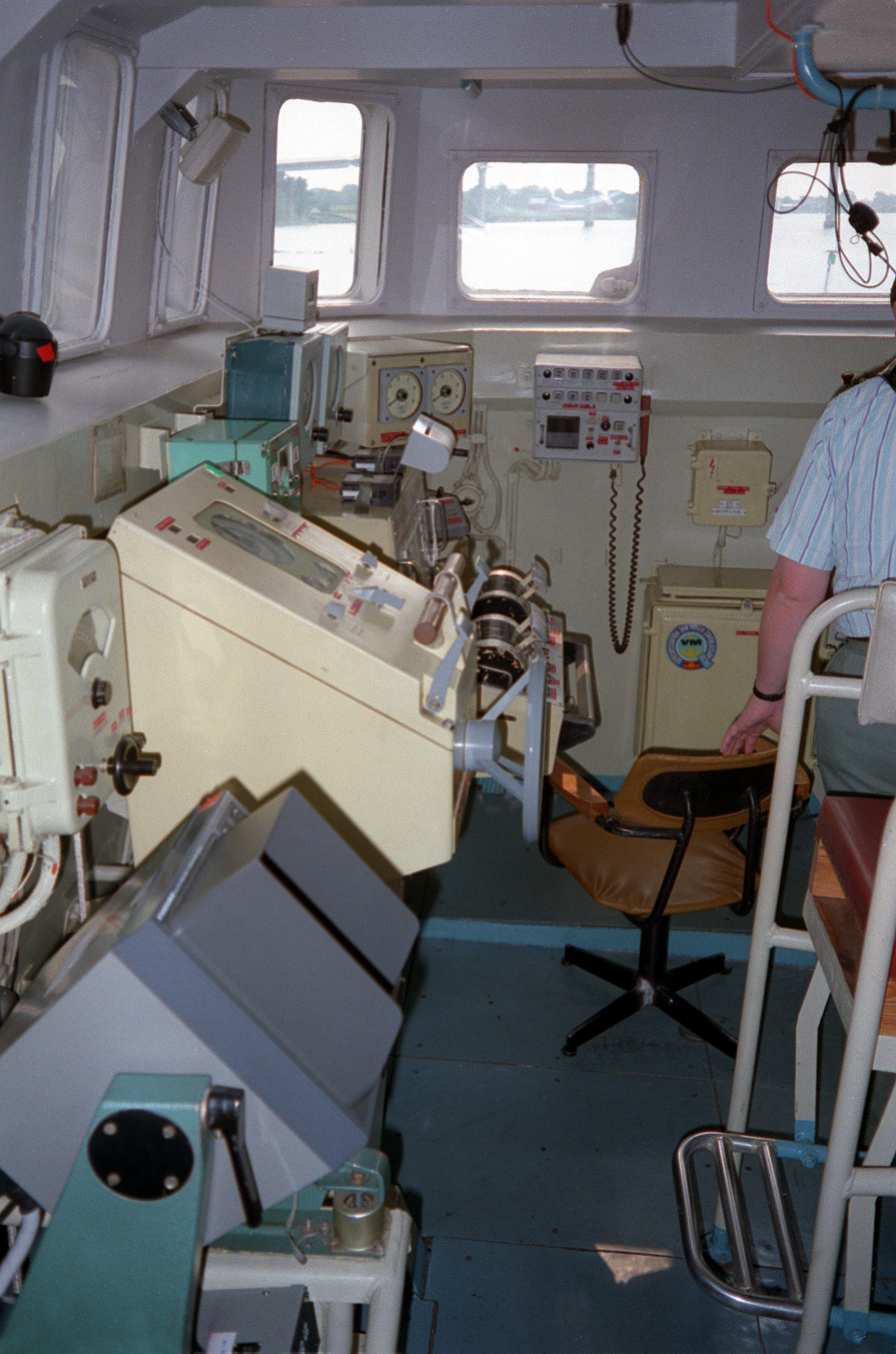 1890k | Interior views of the bridge of USNS Hiddensee (185NS9201) while the ship is moored at the Naval Sea Systems Command facility at