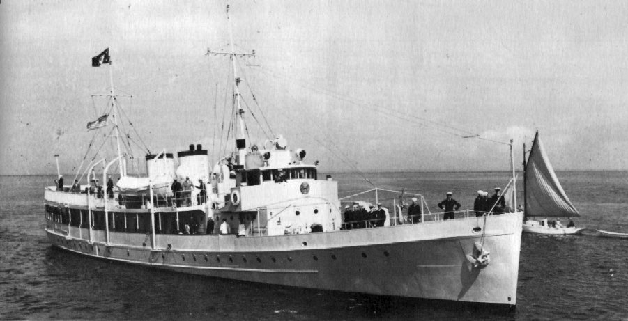 99k | USS Potomac (AG-25) under way, 9 June 1939, with President F.D. Roosevelt, King George V1 and Queen Mary of