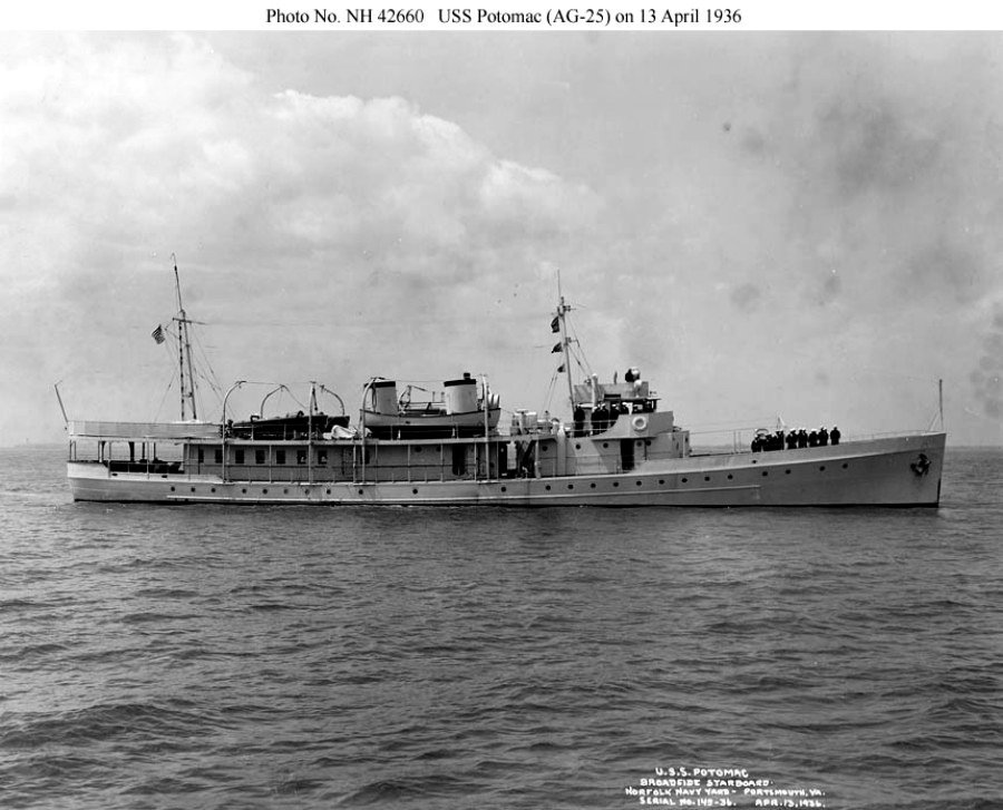 90k | USS Potomac (AG-25) under way off Norfolk Navy Yard, circa 1940. | Tommy Trampp | |