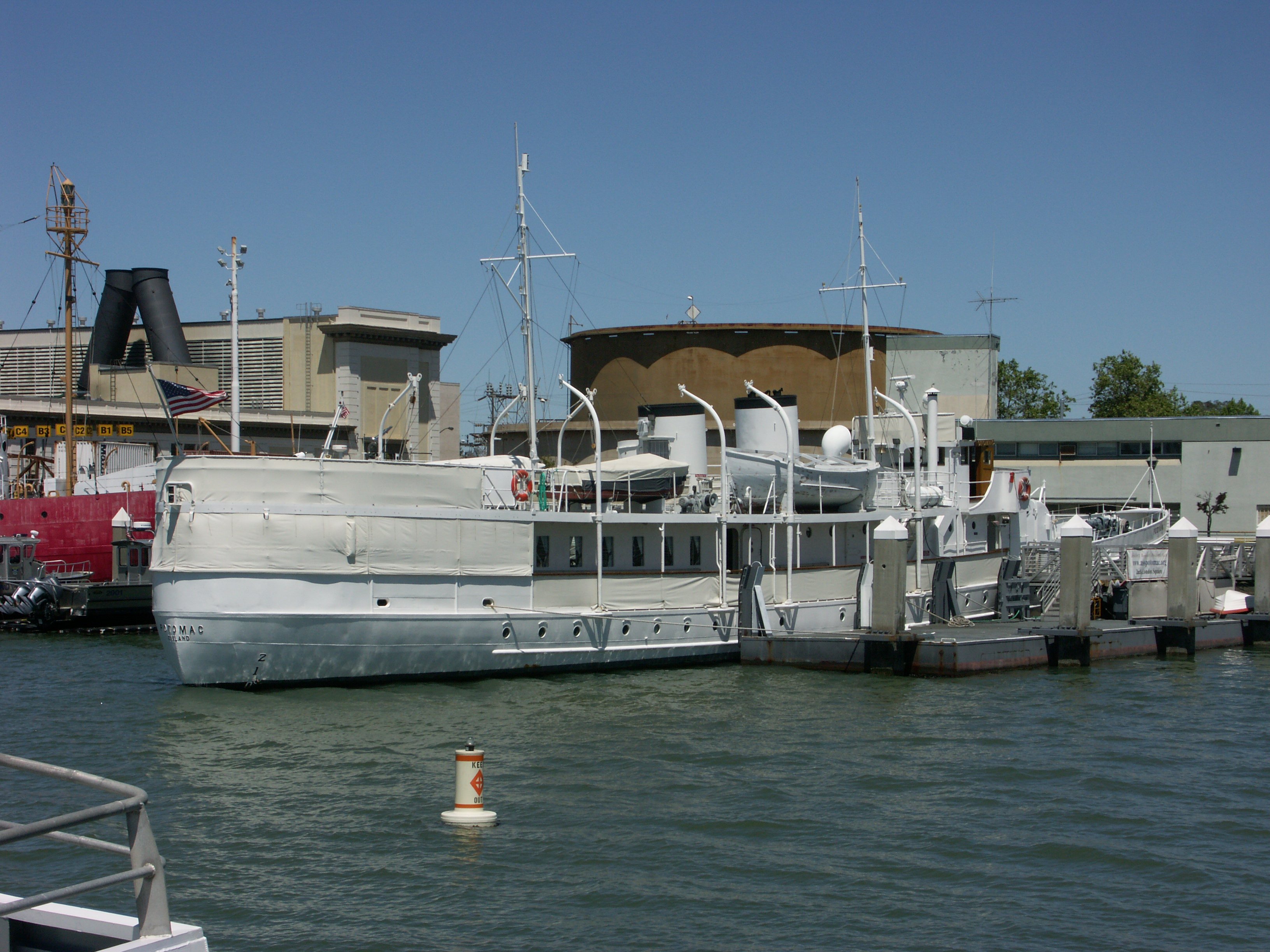 1117k | Ex-USS Potomac (AG-25) moored at her berth, the FDR pier, at Jack London Square, Oakland, CA., 30 April 2010. | CAPT Jack C. Goldthorpe, USCG (Ret.) | |